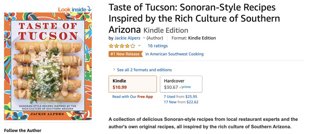 I am THRILLED to announce that the Amazon Kindle version of Taste of Tucson: Sonoran-Style Recipes has been released and is already the #1 new release in American Southwest Cooking!